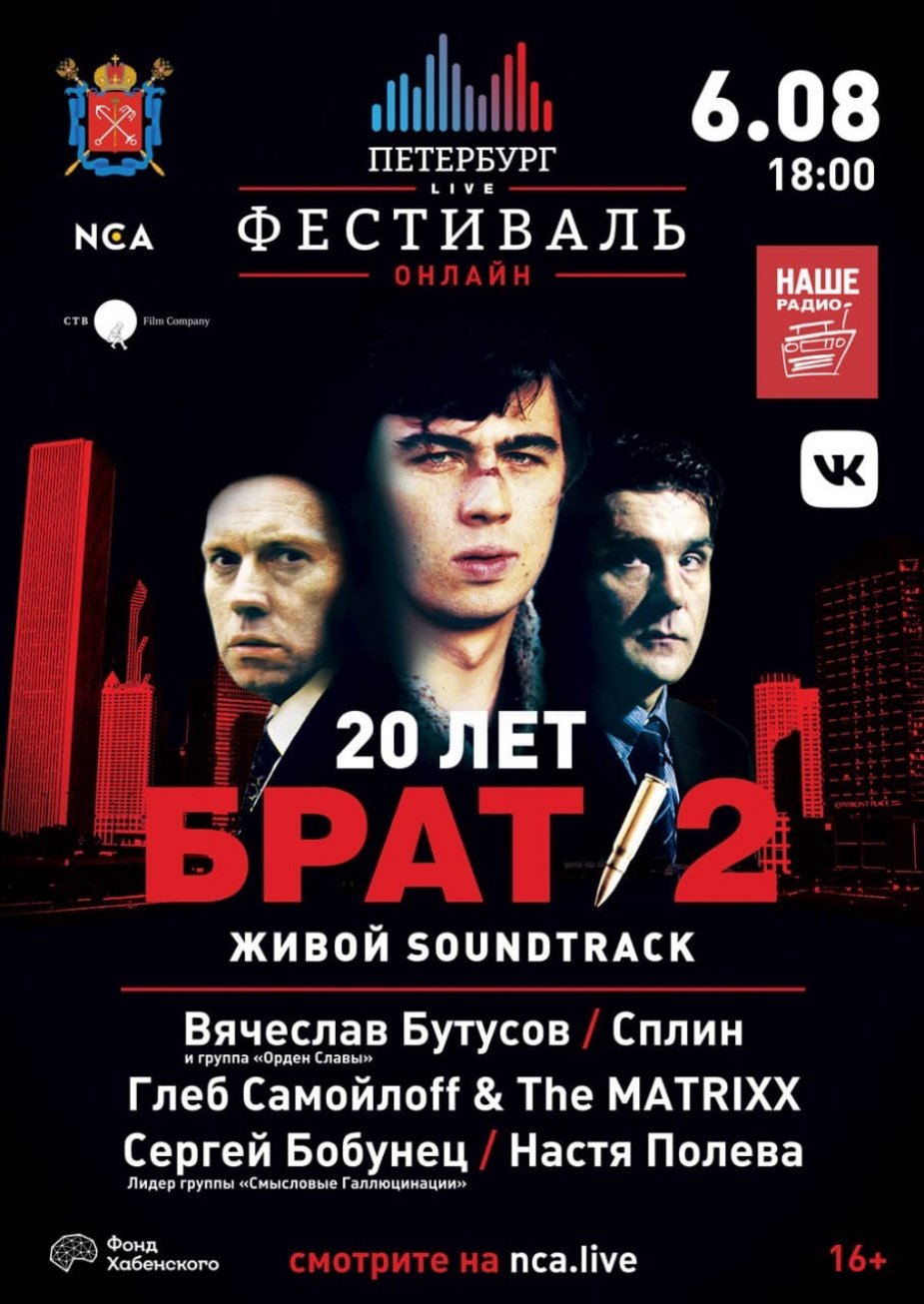 6 августа в 18:00 состоится грандиозное празднование юбилея легендарного фильма в рамках фестиваля «Петербург live». Оно пройдет в Санкт-Петербурге – городе, в котором начинается дилогия «Брат». Благодаря онлайн-формату фестиваль увидят миллионы людей со всего света, а уникальная концепция мероприятия сделает его одним из самых ярких «онлайнов» года.