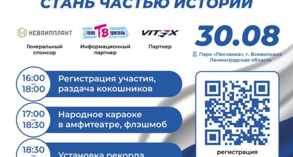 Город Всеволожск и Ленинградская область станут центром исторического события национального масштаба. 30 августа 2025 года с 16-00 до 19-00 в амфитеатре парка «Песчанка» состоится уникальная всенародная акция, претендующая на установление официального рекорда России: «2025 девушек в кокошниках». Событие пройдет под лозунгом: «Возродим величие России вместе!».