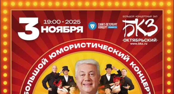 3 ноября БКЗ "Октябрьский" Владимир Винокур и его Театр пародий приглашают дорогих зрителей на «Большой юмористический концерт»! Вас ждут новые монологи, жизненные истории о главном с юмором, пародии на любимых звезд эстрады.